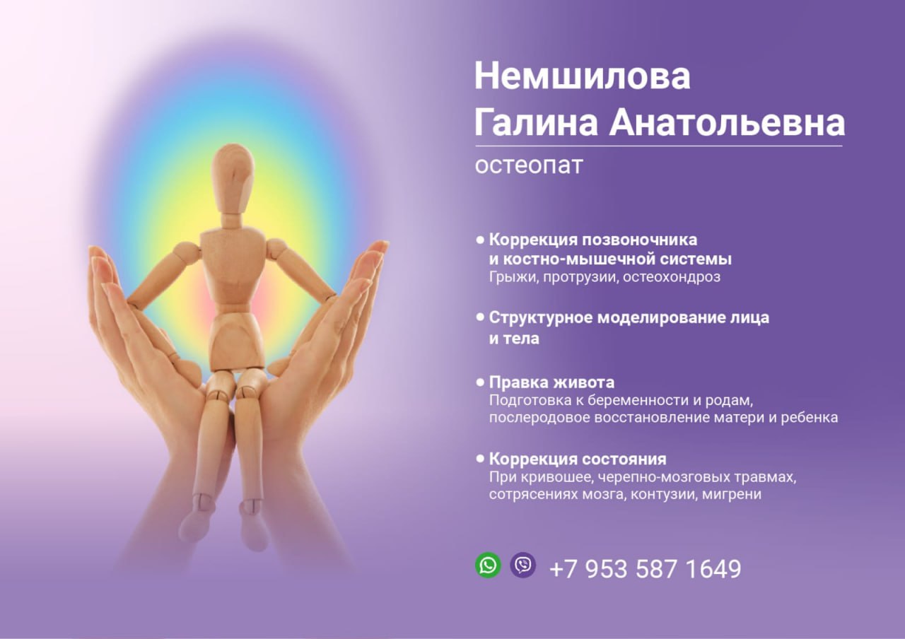 С 1 по 27 ноября на базе Курорта "Русь" принимает остеопат Немшилова Галина Анатольевна из г. Красноярска.